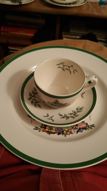 My Christmas Tree Spode vintage-English dishes set is slowly